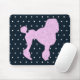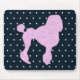 Poodle rose clair très flou applique sur un bleu foncé avec arrière - plan en tissu pois blanc. Joli style rétro les années 50.