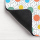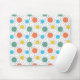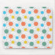 Ce tapis de souris a un design moderne du milieu du siècle de cercles avec des lignes derrière en orange, jaune, turquoise et vert.