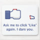 Une tasse pour les personnes qui sont ennuyées avec le tout ceux "comme" des demandes. Montre le classique "comme" l'icône avec un pouce divisé. Le texte lit comme : "Demandez-moi de cliquer sur "comme" encore. Je vous ose."