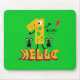 Amusant grand jaune numéro un avec la bouche, le crayon et le texte BONJOUR PREMIER NIVEAU