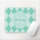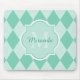 Ajoutez une ambiance élégante à votre style personnel avec cette mousepad motif à Jacquard vert menthe avec un cadre monogramme girly. Personnalisez ce design moderne d'arlequin vert menthe en ajoutant le nom et l'initiale monogrammée de toute jeune femme stylisée.