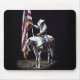 Une magnifique photo de la cowgirl sur un palomino & Paint Horse blanc tenant le drapeau américain pendant l'hymne national au Stampede de Snake River 2014.