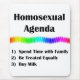 Montrez vos vraies couleurs...les couleurs de l'arc-en-ciel, avec ce design unique "Homosexuel Agenda" et célébrez la communauté gay et lesbienne.
