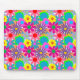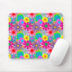 Ce tapis de souris a un design des années 1970 de fleurs dans différentes couleurs.