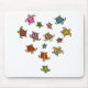 Mousepad est illustré de tortues arc-en-ciel multicolores disposées en forme de coeur.