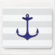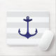 Tapis De Souris Rayures nautiques de blanc gris d'Ancre de bleu