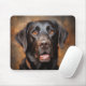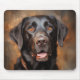 Portrait de fond d'un Retriever au chocolat au Labrador, peint dans un style réaliste. Le chien a une expression amicale, avec sa langue qui sort légèrement et ses yeux bruns qui regardent directement le spectateur. La fourrure est rendue avec un détail minutieux, montrant la texture et la profondeur du manteau de l'animal. L'arrière - plan est un brun doux, flou, créant un sentiment de profondeur et se concentrant sur le visage du chien. Un cadeau parfait pour les amoureux du labrador.
