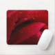 Beautiful macro photograph of a red rose blossom. Big water droplets sit on its delicate petals giving it a fresh summery look.