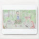 Illustration lunatique d'une petite fille et de ses amis animaux