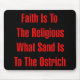 Recherche d'un rapide et d'une manière simple pour expliquer votre objection à la religion ? Les grandes, rouges lettres proclament que la "foi est au religieux quel sable est à l'autruche." La bonne manière de faire d'autres vous connaître n'a besoin d'aucun ami imaginaire vous disant quoi penser.