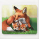 Tapis De Souris Renard rouge Mère et Kits dans l'herbe