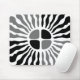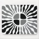 An eye-catching and modern square mouse pad featuring a bold, high-contrast black and white sunburst design. The pattern is split into four quadrants, giving a dynamic, stylized, and slightly retro or mod aesthetic. This mouse pad adds a striking graphic element to any desk or workspace, appealing to designers, artists, or anyone who loves minimalist, geometric, and art deco-inspired accessories. The highly defined pattern ensures visual appeal while providing a smooth surface for optimal mouse performance.