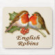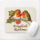 Deux Robins Anglais, assis sur une brindille Holly avec des baies rouges. Le texte dit Robins anglais.
