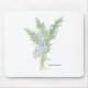 Pad de souris avec illustration botanique d'une branche d'un plante à fleurs de romarin. Copyright de l'oeuvre : Dominic A. White. Tous droits réservés.