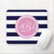 Tapis De Souris Rose Monogramme Marine Bleu Bande Personnalisée