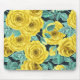 Tapis De Souris Roses d'aquarelle jaune avec feuilles et pattes de