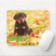 Tapis De Souris Rottweiler Chiot Assis Dans Les Feuilles D'Automne