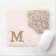 Ajoutez l'élégance féminine à vos bureaux avec un pâle rougissent rose et le mousepad- décoré d'un monogramme d'or à la mode rougissent rose et couleur d'or combinée avec l'arrière - plan solide de tonalité de quartz rose. Mandala métallique d'or de faux élégant et floral dans le coin haut droit. En bas à gauche coin avec l'initiale personnalisée et décorée d'un monogramme dans la couleur assortie d'or. Des points fascinants de confettis de feuille d'or de Faux sont dispersés à travers le fond. Note : Toutes les images sont imprimées. Métal ou parties scintillantes non réel de confettis. Donnez un cadeau personnalisé pour elle qui sera non seulement employée, mais apprécié. Cadeau sophistiqué et customisé pour les femelles exécutives ou pour le décor girly élégant de siège social.