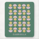 A Scandinavian style geometric floral pattern of shapes in mustard yellow and lilac on a pretty green background, personalized with your name.