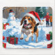 Tapis De Souris Scène de neige festive de Noël avec Beagle