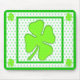 Cette image clipart est un dessin d'un shamrock. La feuille est un vert opaque avec des pois en blanc avec un fond vert. Une bordure autour de la feuille est une chaux et vert foncé. Des pois verts sont ajoutés ainsi qu'un dossier blanc. Une bordure étincelante verte a été ajoutée. Cette mousepad fait un grand ajout pour votre maison ou bureau. Gardez le blanc arrière ou changez de couleur.