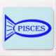 Cette mousepad présente un contour de poisson bleu avec de jolis détails à l'intérieur. Il y a aussi le texte qui dit Pisces à l'intérieur du contour du poisson. Ce design est idéal pour les personnes ayant un anniversaire entre le 19 février et le 20 mars.