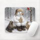 Tapis De Souris Snowman In Winter Woods With Animal Friends