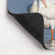 Pad de souris avec deux pélicans blancs drôles. On dirait que l'un des Pélicans demande une date à l'autre. Les deux sont entourés d'eau bleue avec des reflets blancs. Photo prise à la réserve faunique Ding Darling sur l'île de Sanibel, FL., USA.