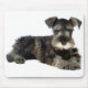 Cette mignonne mousepad à la canine présente l'image d'un jeune chiot gris miniature Schnauzer pointu contre un arrière - plan blanc immaculé.