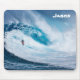 Tapis de souris surfant avec une grande vague tube avec nom personnalisé.