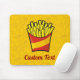 Illustration de dessin d'un petit paquet de frites sur la malbouffe jaune arrière - plan sans soudure. Texte personnalisé.