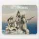 Trois statues de sirènes posées sur un rocher dans la mer. Vous pouvez customiser un texte de jolies sirènes.