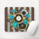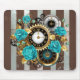 Tapis De Souris Steampunk Clock and Turquoise Roses on Striped