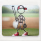 Un personnage en bâton habillé comme un joueur de baseball se dresse sur l'herbe verte d'un terrain de baseball tenant une batte et un gant