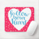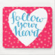 La citation de lettrage de brosse suivent votre coeur à l'arrière - plan rose d'aquarelle. Design de carte rose de vecteur avec la typographie moderne. | Bigstock® - tous droits réservés.