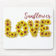 Add a touch of joy and happiness with this pretty sunflower "love" mouse pad. This pattern features various amber and red-orange colors. Express yourself by experimenting with different background colors and added text.