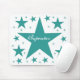 Superstar Collection Mousepad en turquoise avec une cascade d'étoiles amusantes. Ce design d'étoile mignonne et girly ferait un grand cadeau pour toute fille, nièce ou autre femme dans votre vie. Le texte peut être laissé tel quel ou être personnalisé pour dire ce que vous voulez. Des dizaines de polices et de couleurs au choix !