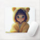 Le mignon costume de fourrure jaune bébé dessiné avec de l'IA va bien avec.