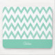 Une mousepade motif à la menthe verte et blanche à chevrons avec un chevron de crayon de couleur à la main. Personnalisez ce design de zigzag à la menthe moderne et élégant en ajoutant votre nom.