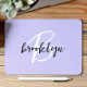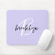 Ce tapis de souris personnalisé élégant présente un monogramme et un prénom en écriture moderne noire et blanche sur un fond lavande tendance.