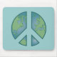 Un graphisme stylisé de la terre avec le symbole de paix sculpté dessus.