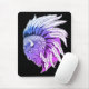 Buffalo Head, animal avec coiffure indienne. Mouse Pad pour les amateurs de bisons américains. Version violette et bleue.