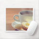 Coupe de thé chaud au petit-déjeuner dans une tasse blanche avec des biscuits.