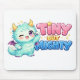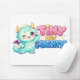 Adorable turquoise fluffy dragon with rosy cheeks and playful pink lettering, ideal for apparel and cheerful, whimsical outfits.
