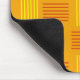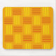 Ce tapis de souris a un design moderne du milieu du siècle qui ressemble à un tissage avec des lignes rouges et jaunes sur un champ d'or.