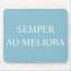Un tapis de souris motivant avec l'expression latine "semper ad meliora". Une phrase populaire dans la Rome antique, la traduction est "toujours vers de meilleures choses". Il nous rappelle de nous concentrer sur l'avancée vers des choses plus grandes sans regarder en arrière. Le lettrage du pavé de souris a une sensation classique évoquant les inscriptions publiques romaines. Le design typographique est composé d'un arrière - plan bleu turquoise et d'un texte blanc immaculé. À la fois inspirant et élégant, il fera un bel ajout à votre bureau.