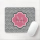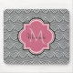 Une mousepad motif en arc de pétoncle à la mode art noir avec un badge en quatrefoil rose foncé que vous pouvez personnaliser en ajoutant facilement votre propre monogramme et nom. Il fait partie de la collection de printemps de Monogram Rose Rapture Scallops.