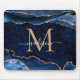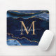 Modern Glam Navy Blue Gold Glitter Sparkle Agate Geode Gemstone Elegant Feminine Monogram Script Name Mouse Pad