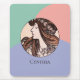 Ce joli design présente une image Art Nouveau d'Alphonse Mucha d'une femme aux cheveux fluides et d'une guirlande de fleurs rose pâle. Mucha a créé de beaux art, souvent pour des affiches, de femmes et de fleurs en costumes fleuris avec des cheveux gracieux et sinueux. Cette image du domaine public fait partie de son oeuvre intitulée Vitrail pour la façade de la boutique Fouquet Valley. L'image circulaire est placée contre un arrière - plan de vert vintage, pêche et violet doux. Assurez-vous de taper votre nom dans la section Personnalisée ou de supprimer le texte de l'espace réservé si vous ne voulez pas de texte avec l'image.