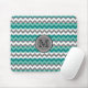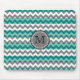 Tapis De Souris Turquoise et Gris Chevron Zigzag Monogramme #2